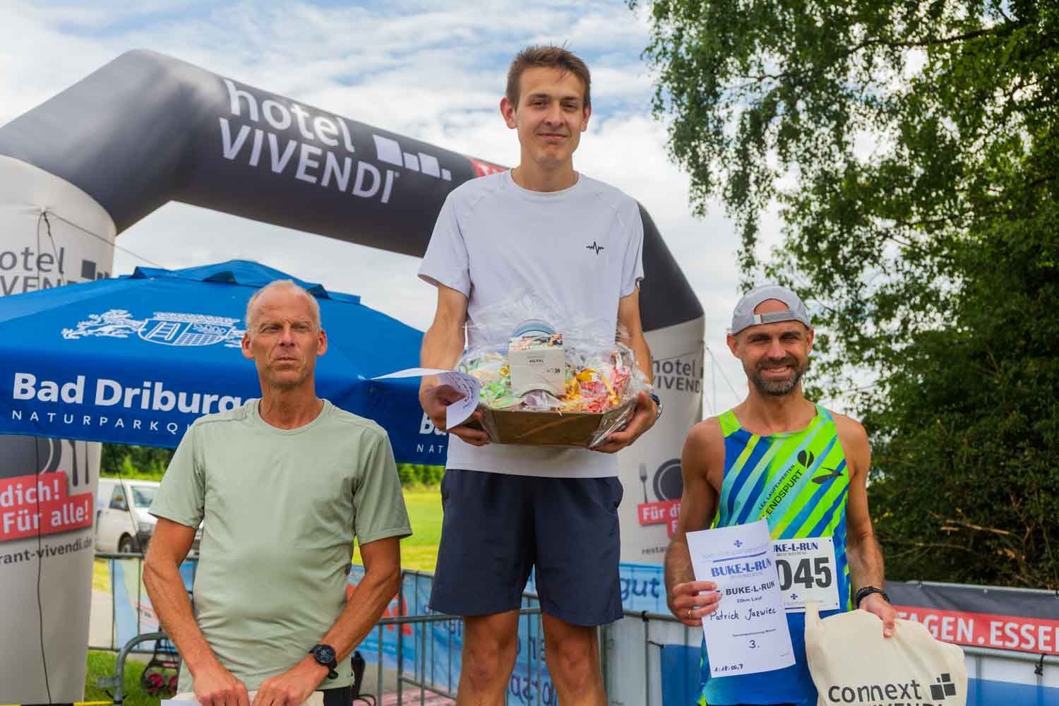 Platz 2 belegte Mathias Nahen (ebenfalls TV Jahn Bad Driburg) in 1:16:47, gefolgt von Patrick Jazwiec vom Laufladen Endspurt Running Team mit 1:18:00.